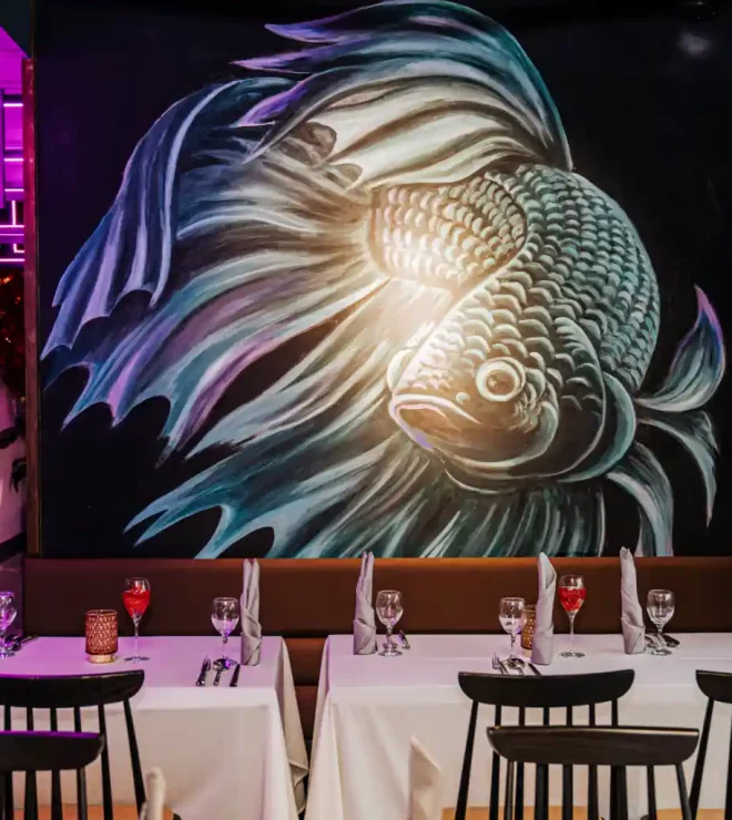 Reservieren Sie Ihren Tisch im Thuy Zen. Unsere Räume verbinden moderne Eleganz mit asiatischer Ästhetik. Genießen Sie ein gehobenes Dining-Erlebnis an weiß gedeckten Tischen, begleitet von stimmungsvoller Beleuchtung und kulturellen Akzenten. Wir schaffen eine einladende Atmosphäre für private Anlässe oder Gruppen.